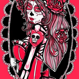 Beautiful bones signed print dia de muertos festival mictecacihuatl sugar skull calaca day of the dead headdress.